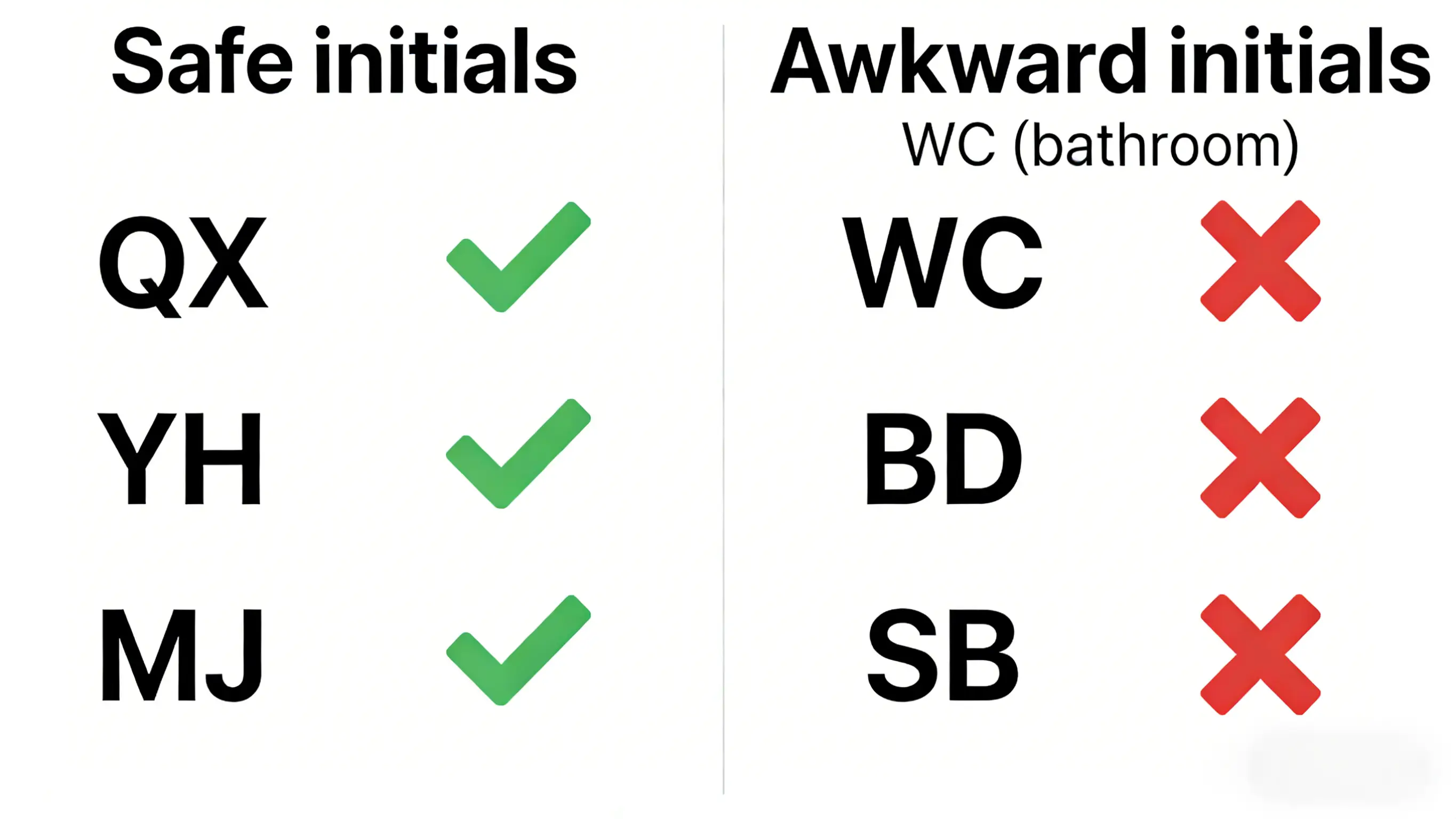 If your chosen name has common initials, ask for alternatives. Love the name Wei (伟) but LW and ZW are oversaturated? Try Wei (薇) or Wei (维), different characters, same sound, but paired with a less common surname, you get safer initials. You keep the meaning and feel while dodging the initial collision problem.